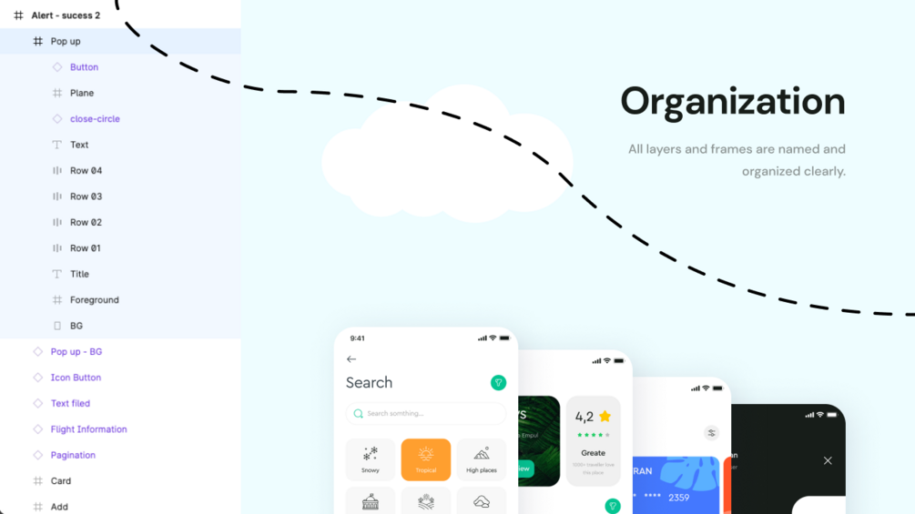 - Best Organization: TravelHive UI kit is structured with a highly organized and intuitive file structure. Components, screens, and assets are neatly categorized, making it easy to locate and modify specific elements. This organized approach streamlines the design and development process, saving time and effort.