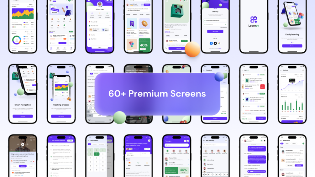 Unlock the potential of your educational app with Learnzy, the ultimate UI mobile kit for selling courses and enhancing learning.